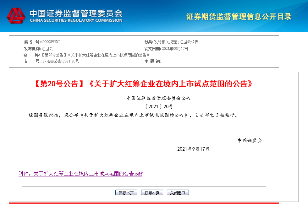9月17日晚,證監(jiān)會(huì)發(fā)布的《關(guān)于擴(kuò)大紅籌企業(yè)在境內(nèi)上市試點(diǎn)范圍的公告》顯示,屬于新一代信息 ... 查閱全文
