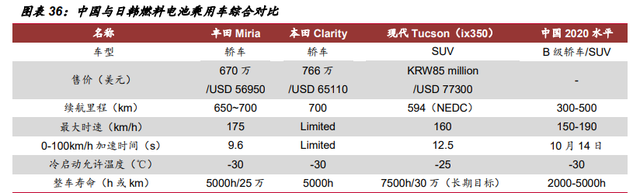 與國際燃料電池汽車發展相比,國內燃料電池乘用車產業化發展緩慢。主要由 于兩方面的原因,一方面,我國燃料電池堆的技術水平還達不到乘用車的水準,經濟 性方面仍無法與目前的燃油車、純電車相媲美。另一方面,燃料電池車的推廣離不開 加氫站的建設。加氫站配套的不足直接導致下游需求的弱化,車企沒有動力向乘用車 領域進行研發和推廣。