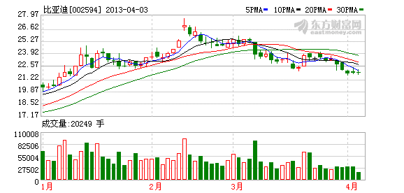 面對虧損的業績,二級市場的投資者選擇用腳投票,自春節以來,比亞迪再次進入了綿綿下跌的通道,據統計,自2月18日截止4月1日,比亞迪A股市場累計下跌15.06%,同期中小板指數僅僅下跌1.46%,這不免使得重倉該股的機構很受傷。
