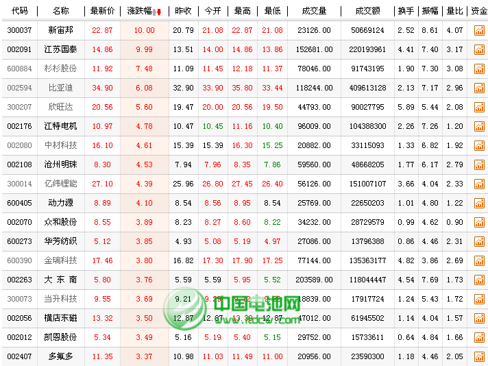 周二早盤鋰電池股受利好刺激股價再次爆發(fā),新宙邦、江蘇國泰漲停,此外,杉杉股份、比亞迪、欣旺達(dá)等漲幅靠前。