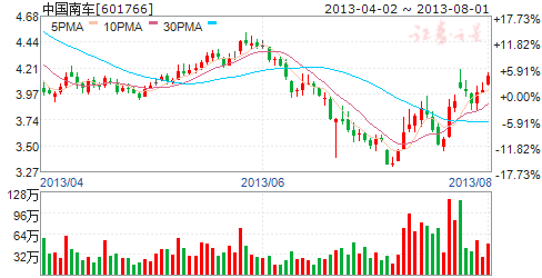 受上述消息影響,8月1日,中國南車股價上漲3.24%。