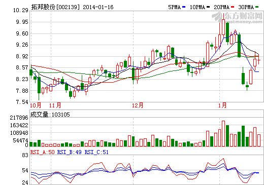 拓邦股份(002139)1月16日公告, 拓邦股份2014年1月16日收到深圳市科技創(chuàng)新委員會簽發(fā)的《深圳市科技創(chuàng)新委員會驗收合格證書》(證書編號:深科技創(chuàng)新驗字A2013230):公司“納米磷酸鐵鋰動