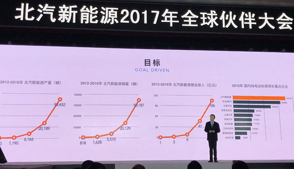 北汽新能源將陸續(xù)推出18款新車(chē),并在2017年定下了17-20萬(wàn)輛的銷(xiāo)量目標(biāo)。