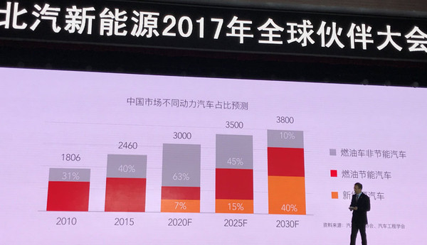 鑒于這樣大好的市場前景,鄭剛還為未來汽車市場做了一個占比推測??梢钥闯觯?030年,新能源汽車市場占比將超過燃油車非節(jié)能汽車。