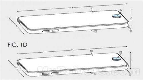 這項專利非常的有趣,它的外觀和普通的iPhoneHome鍵一模一樣,但是里面卻暗藏玄機,當你用一個足夠的力去按壓它,觸發(fā)它的感應裝置以后,home鍵就會彈出來,成為一個操控桿。