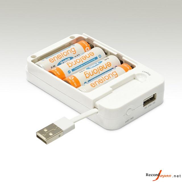 另外,該移動電源還作為鎳氫電池的充電器使用,同樣只需將電池放入插槽內(nèi),連接電源即可。容量為1900毫安時的鎳氫電池充電時間為2節(jié)6小時,4節(jié)10小時。