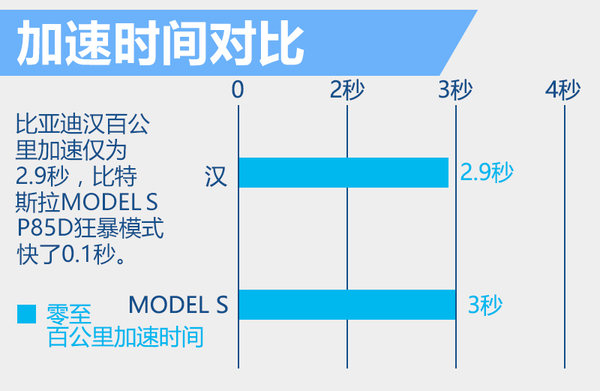 比亞迪漢在前驅(qū)搭載了一臺2.0Ti渦輪增壓發(fā)動機(jī)和電動機(jī),前電機(jī)最大輸出功率為110千瓦。后驅(qū)同樣采用電動機(jī)驅(qū)動,最大輸出功率為350千瓦。相比于特斯拉MODEL S的高性能版本車型P85D,比亞迪漢2.9秒的零至百公里加速時間更快,比前者開啟狂暴模式快了0.1秒。值得一提的是,比亞迪漢在純電模式下可行駛100公里。