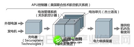 圖3:有很多企業參與其中的電源系統 波音787客機的電源系統由多家企業制造。杰士湯淺負責向泰利斯集團供貨電池單元。 |