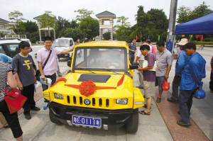 去年5月,高明區新能源汽車推廣應用綜合示范試點啟動儀式舉行,現場的新能源汽車引來不少市民觀看。(資料圖片)/佛山日報記者王偉楠攝