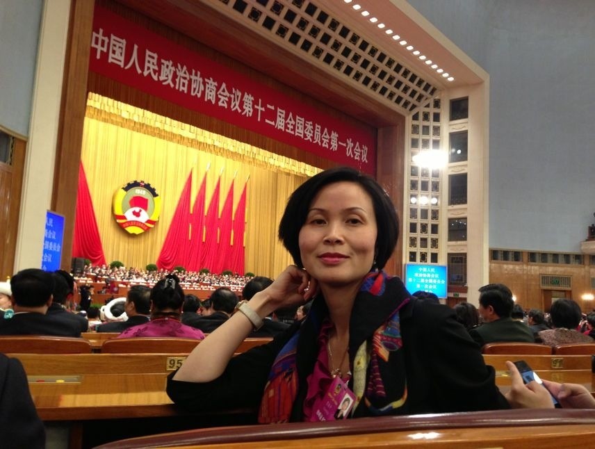圖為曾淑平參加兩會(huì)間隙,今年兩會(huì)她的提案還是圍繞節(jié)能減排  圖/中國(guó)電池網(wǎng)