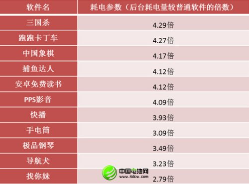 以下是部分被發現加入后臺喚醒的高耗電應用名稱及耗電增加的倍數: