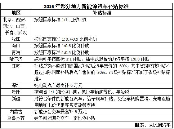 近日,2016年新能源汽車地方補(bǔ)貼標(biāo)準(zhǔn)陸續(xù)出爐。截至3月,已有北京、深圳、河北等16個(gè)省市明確了補(bǔ)貼標(biāo)準(zhǔn)。相比2015年的補(bǔ)貼標(biāo)準(zhǔn),部分地區(qū)如江蘇、海口、青海、沈陽等地略有收緊。在地方補(bǔ)貼政策懸而未定的地區(qū),呈現(xiàn)出多種銷售模式并存的狀態(tài)。