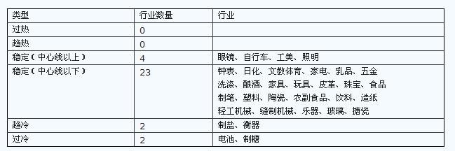2013年2月,中國輕工業(yè)信息中心對全國輕工行業(yè)32個行業(yè)進(jìn)行監(jiān)測,行業(yè)景氣情況如下: