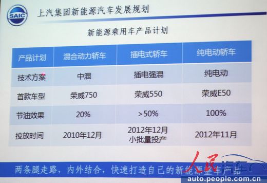 上汽集團(tuán)相關(guān)負(fù)責(zé)人在接受記者采訪時(shí)表示,插電式強(qiáng)混和純電動(dòng)是上汽在新能源車發(fā)展方面的主攻方向。其總體目標(biāo)是:達(dá)到國(guó)內(nèi)新能源汽車20%市場(chǎng)占有率;同時(shí),通過實(shí)施節(jié)能和新能源汽車戰(zhàn)略,快速降低公司平均燃油消耗值。