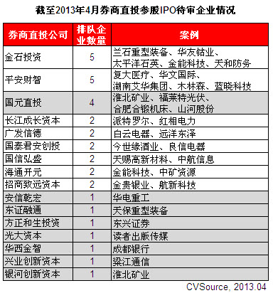 表2 截至2013年4月券商直投參股IPO待審企業情況