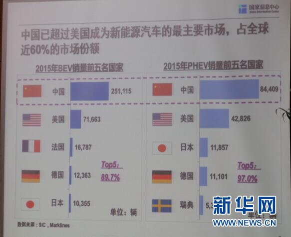 2015年全球新能源汽車銷售56.4萬輛,以純電動汽車為主,同比增長了102%。其中,中國的貢獻(xiàn)率最為明顯,已經(jīng)超越美國成為新能源汽車最主要市場,占全球近60%的市場份額(純電動和插電混動均位于第一位)。與中國在2015年迅猛發(fā)展相比,美國電動汽車銷售量去年同比減少3.6%。
