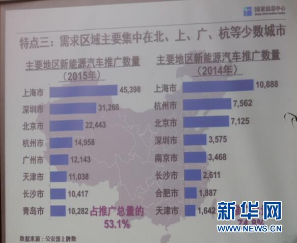 據(jù)國家信息中心信息資源開發(fā)部徐長明主任介紹,近期中國新能源汽車市場呈現(xiàn)三個(gè)發(fā)展特點(diǎn):其一,2014年以來爆發(fā)式增長明顯,且純電動與插電混動同步發(fā)展;其二,乘用車企業(yè)梯隊(duì)化顯著,比亞迪占到市場份額三分之一;其三,需求區(qū)域主要集中在北上廣杭等少數(shù)城市。