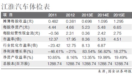 我們認為江淮汽車是A股最為穩妥的新能源汽車投資標的,我們將其目標價上調至11-14元,對應2013年15-20倍PE,維持其“買入”評級。