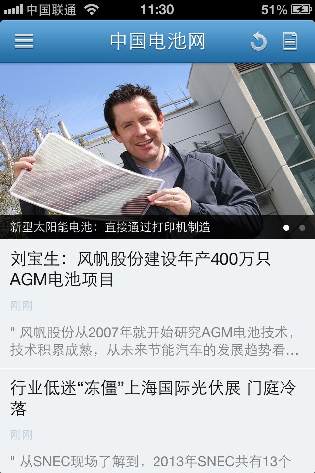 【本網訊】 在中國電池網上線兩周年之際,中國電池網手機客戶端(下載地址: http://m.chronotech.cn/about/app.html )同步升級,讀者 期待的列表頁新增了焦點圖輪播功能。昨日(18日)已編譯上線,