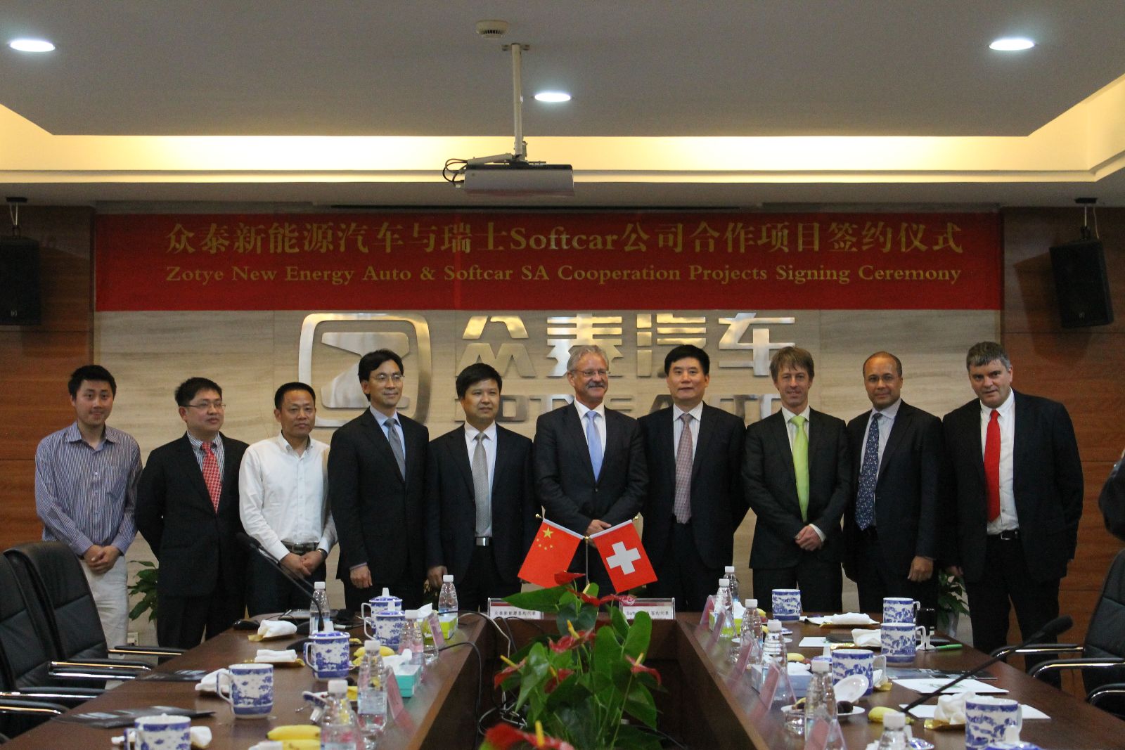 為繼續深化眾泰新能源汽車與瑞士合作伙伴的業務合作,建立面向未來的戰略合作伙伴關系,當天,眾泰汽車與瑞士 Softcar SA 公司就新能源汽車領域,在研發、生產方面的戰略達成了諸多合作意向,并在比特·馮朗特副州長及韓杰副廳長的見證下,雙方簽署了戰略合作框架協議。