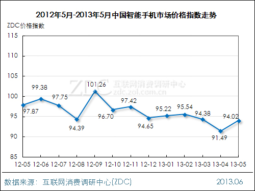 (圖) 2012年5月-2013年5月中國智能手機市場價格指數走勢