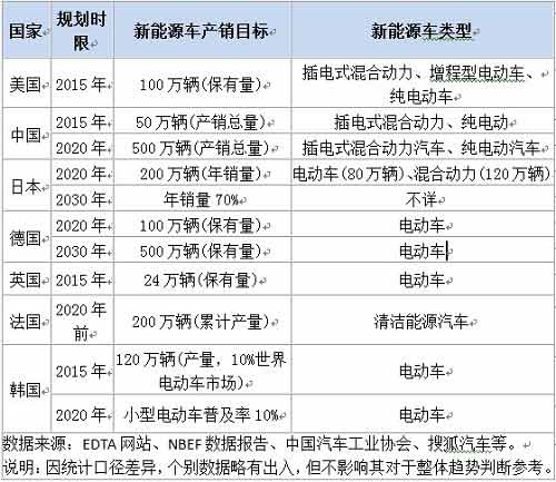 目前,在提出較為明確的新能源汽車規劃的國家中,除中國外,其他都是具有很強汽車工業基礎的發達國家。如,美國、德國、日本、韓國、法國、英國等。這些國家也是目前世界上主要的汽車產銷國家。