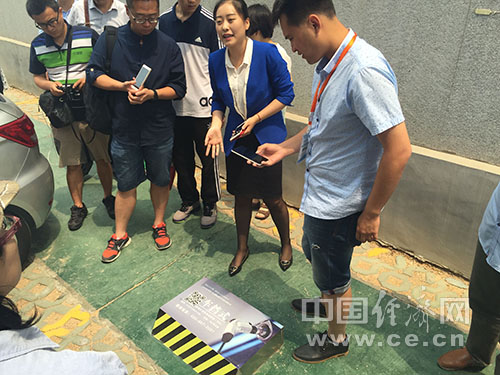青島特銳德電器股份有限公司的工作人員向“互聯網+在山東”全國網絡媒體采訪采風團介紹汽車群充電系統結構。中國經濟網記者李焱 攝
