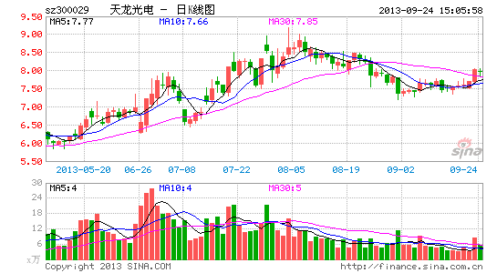 天龍光電9月24日收于7.95元,下跌1%。