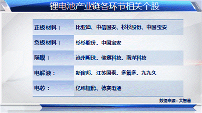 而在談到鋰電池產業鏈的原材料生產環節時,付永翀表示:關鍵技術的突破,將加大上游企業在整個產業鏈中的話語權,上市公司多氟多(002407,股吧)和九九久(002411,股吧)是典型代表。盡管這兩家公司之前在二級市場表現疲軟,但近期有望成為整個鋰電池概念股的龍頭品種。