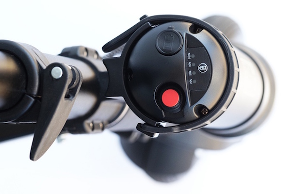 續(xù)航時間應該是用戶最關心的一個問題了。車子這么小,續(xù)航時間自然大不了哪里去,但是也是夠用了。電池上有個面板,可以通過按紅色按鈕打開或關閉馬達,并配有 LED 燈來顯示剩余電量。考慮到車子整體的大小,電池的設計也很小巧,而且易于拆卸,這個保溫杯大小的電池能為 A-Bike 提供 25 公里的續(xù)航,充一次用來上下班足夠了吧。