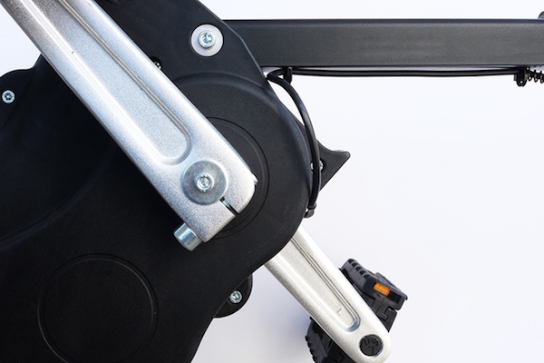 除了續航時間以外,速度同樣也很受用戶的關心。它的最快速度是每小時 20 公里,倒也不快不慢。應該還有用戶會擔心,要是騎著騎著沒電了怎么辦?之前有看到騎小輪自行車的朋友,雙腿蹬的飛快,卻也抵不上人家大輪子來得灑脫。而 A-Bike 在這點上進行了優化,它的雙鏈驅動讓騎行者可以像騎普通自行車那樣騎行,同時,前輪上的無刷馬達還能為 A-Bike 提供電動助力。
