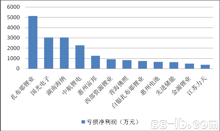 有最賺錢的就有最虧錢的,2012年是鋰電行業的調整年,多家上市公司的鋰電業務也深陷泥沼,最典型的是就是西藏礦業的子公司扎布耶鋰業,虧損5132萬,而國光電器旗下的國光電子也大虧3016萬,成飛集成控股的中航鋰電盡管營業收入高達2.13億,但也是入不敷出,中航鋰電2012年虧損2264萬,比較讓人詫異的是,惠州電池2012年的營業收入高達16.46億,但凈利潤卻是虧損639.59萬。(圖3)