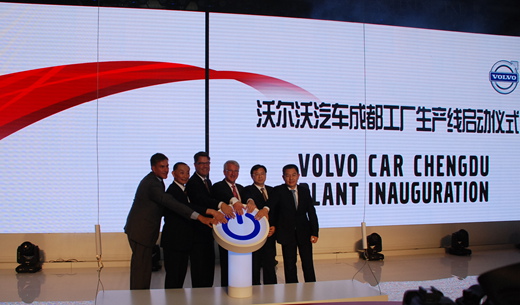 開業(yè)典禮當(dāng)天,沃爾沃S60中國第一位車主,京劇表演大師梅葆玖先生、沃爾沃汽車集團生產(chǎn)與采購高級副總裁拉爾斯.韋伯(Lars Wrebo)、沃爾沃汽車中國業(yè)務(wù)高級副總裁拉爾斯.鄧(Lars Danielson), 以及去年在成都舍己救人的“洋雷鋒”生產(chǎn)制造工程師哈羅德.葛貝爾(Harald Gobel)一同登臺,在各級政府領(lǐng)導(dǎo)和瑞典大使館代表、媒體的見證下,為成都工廠的啟動拉開序幕。