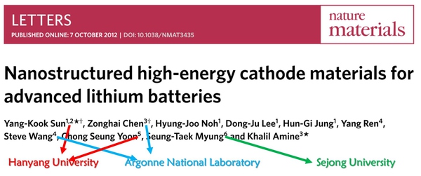 Y. K. Sun, K. Amine; Nature Materials, 2012