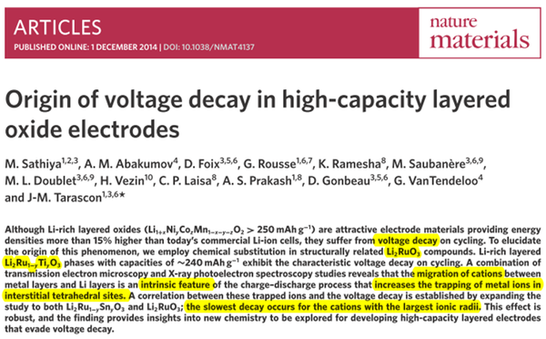 M. Sathiya, J. M. Tarascon and et al, Nature Materials 14 (2015)