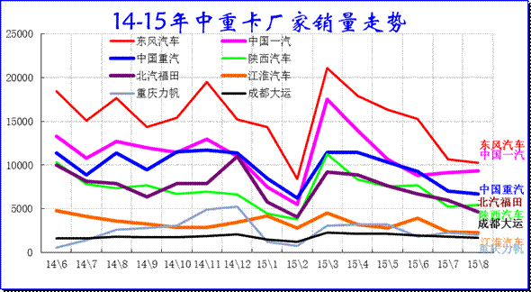由于15年政府審批效率下降,項目審批而不開工的較多,上半年的中重卡屬于休眠期,目前經濟也極度不景氣,各家3-8月銷售的表現均很差。