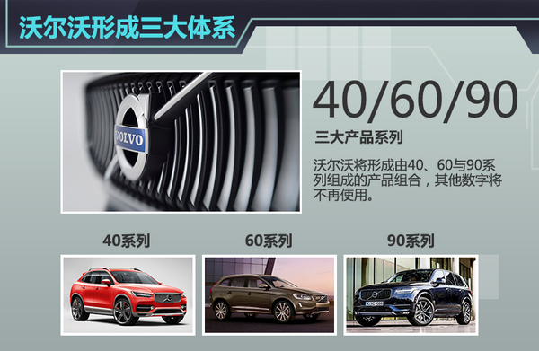 沃爾沃的命名體系中,在SPA模塊化架構推出之前,產品命名從30(如:C30)一直覆蓋至80系列,旗下產品系列相當復雜。隨著SPA與CMA兩大架構體系的確定,沃爾沃也確立了以40、60及90三大系列組成的產全新品線,此前的30、50、70、80系列將不再使用。未來的產品分類中,網通社從沃爾沃官方了解到:未來40系列將對應緊湊級產品、60系列則是中級車產品,90系列則是大型車,三個產品系列相比之前更加清晰。有意思的是,此前奔馳也剛剛完成了旗下產品的全新命名,形成了以CES形成的組合,可以說沃爾沃與奔馳兩者不謀而合。
