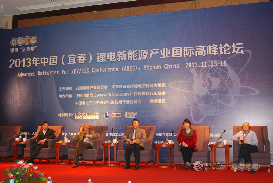中國電池網-中國電池雜志(楊陽江西宜春報道) 11月14日下午,在ABEC鋰電高峰論壇上,福斯特總工程師侯峰、巴黎六大Alain Mauger、比利時優(yōu)美科Dong Joon IHM、東莞杉杉黃繼宏、CIC Michel Armand(圖片從左至右)等五位嘉賓就鋰電池關鍵材料的相關問題和與會者進行頭腦風暴,就技術走向進行了探討。