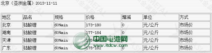 (附圖二為11月11日鈷酸鋰材料市場價格 數據來源:亞洲金屬網)