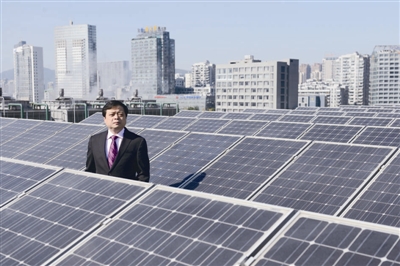 11月29日,南存輝在浙江杭州正泰太陽能公司的太陽能發電站。新華社