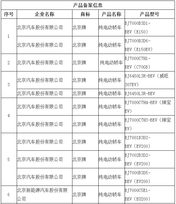 北京市示范應(yīng)用純電動(dòng)小客車生產(chǎn)企業(yè)及產(chǎn)品備案信息