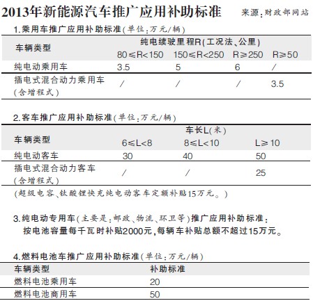 不過,丁曉華表示,此次補貼政策給予示范城市的任務標準很高,比如其中提到2013-2015年,特大型城市或重點區域新能源汽車累計推廣量不低于10000輛,其他城市或區域累計推廣量不低于5000輛。