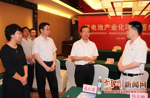 鄭重德在致辭中說,北京金能世紀科技有限公司在世界上首創溶液鑄膜法批量生產釩電池和燃料電池的核心材料——全氟離子膜,擁有世界領先的釩電池技術,在釩電池全氟離子膜、釩電解液、電極、電堆及電池模塊化方面有著巨大的技術優勢、產品優勢和成本優勢。朔州發展潛力巨大,發展空間廣闊。今后,我們將繼續加強與朔州市的交流合作,在發展新型高科技產業等方面積極作為,為朔州轉型跨越發展做出積極的貢獻。