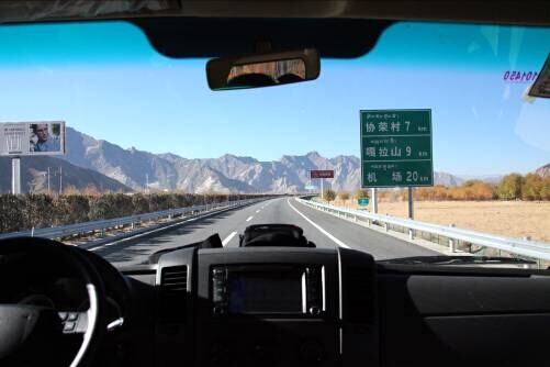 東風御風純電動汽車行駛在拉薩市區與貢嘎機場的路上