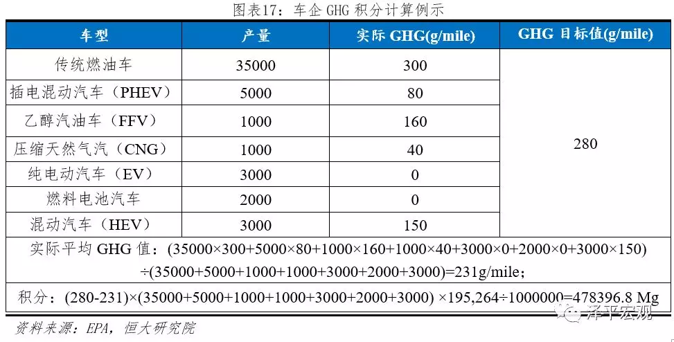 (2)ZEV積分公式:CARB根據下表所示積分公式計算各企業ZEV積分,并進行年度公示。根據《Health and Safety Codesection 43211 civil penalty》條例,對于不滿足ZEV積分要求的公司,每個ZEV積分罰款5000美元。