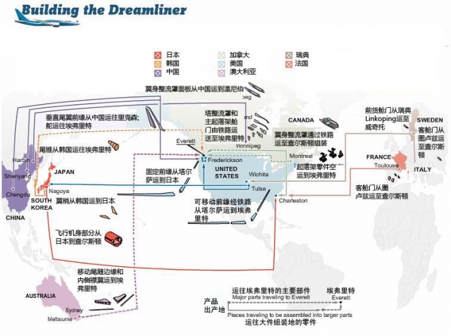 在波音787的諸多創新中,有一個不得不提的是其設計和制造的全球協作。
