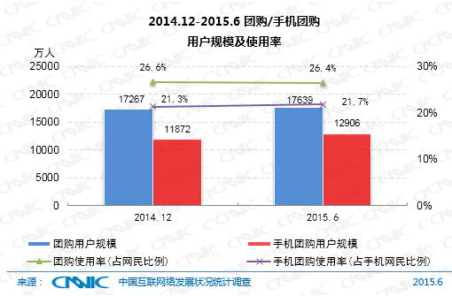 2014.12-2015.6團(tuán)購/手機(jī)團(tuán)購用戶規(guī)模及使用率