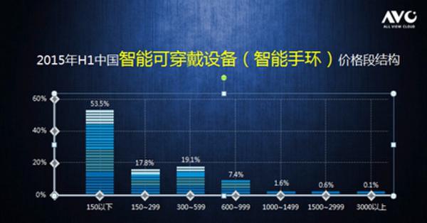 2015年H1中國智能可穿戴設備(智能手環(huán))價格段結(jié)構(gòu)