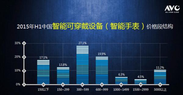 2015年H1中國智能可穿戴設備(智能手表)價格段結(jié)構(gòu)
