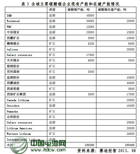從產(chǎn)能來看,賽迪經(jīng)智統(tǒng)計了全球主要碳酸鋰企業(yè)現(xiàn)有碳酸鋰產(chǎn)能和在建產(chǎn)能,并且預(yù)計所有在建產(chǎn)能將在2015年得到完全釋放,屆時碳酸鋰的全球產(chǎn)能將達到40.6萬噸,遠遠高于2015年的19.7萬噸的需求量,甚至高于2020年36.6萬噸的需求量。因此,賽迪經(jīng)智認為未來相當(dāng)長的一段時間內(nèi),全球碳酸鋰的產(chǎn)能是過剩的。